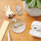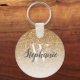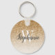 Este chic keyring apresenta um fundo de brilho azul ombre dourado. Personalize-o com a sua fonte inicial em branco serif e o seu nome no script de pincel em estilo de escrita manual da cinza escura.