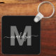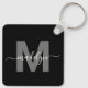 Crie seu próprio Na moda, personalizado moderno, preto e branco, Chaveiro ao quadrado do Monograma. Este elegante chaveiro quadrado adiciona um toque moderno e personalizado aos seus essenciais do dia a dia. O design apresenta um monograma cinza ousado, centrado em um fundo preto sólido, com seu nome em um roteiro branco elegante, posicionado sobre ele. O mesmo design de monograma limpo e na moda aparece em ambos os lados para uma vibração branca e preto coesa. Perfeito para quem ama um olhar clássico e mínimo, este chaveiro personalizado é prático e chique. Todas as cores podem ser personalizadas, permitindo que você crie um chaveiro que ajustado seu estilo perfeitamente. Ideal para aniversários, feriados, ou apenas porque, este chaveiro de monograma personalizado é um presente pensativo ou uma forma na moda para controlar suas chaves, bolsas ou acessórios.