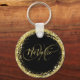 Personalize facilmente este porta-chaves de luxo com moldura de brilho dourado com o seu nome e monograma personalizados.
