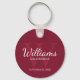 Adicione um toque pessoal ao seu casamento com padrinho de casamento personalizado. Este chaveiro apresenta o nome de padrinho de casamento personalizado no estilo de letra de script clássico branco com detalhes de casamento no estilo de letra serif branco e monograma em estilo de letra serif clássico vermelho claro e vermelho claro como fundo, em fundo vermelho burgundy. Também perfeito para o melhor homem, pai da noiva, porta-voz e muito mais.