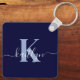 Chaveiro Monograma de Script Azul do Marinho Moderno