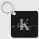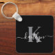 Chaveiro Monograma de Script de Cinza Negra Moderna