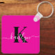 Este simples e elegante chaveiro cor-de-rosa-quente com seu primeiro nome em uma fonte de script de tendência em branco e sua primeira inicial em uma fonte moderna de boné em preto é perfeita para suas chaves. É na moda e moderno e, no entanto, muito clássico.