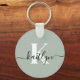 Este simples e elegante chaveiro verde sábio com seu primeiro nome em uma fonte de script de tendência em preto e seu primeiro inicial em uma fonte moderna de boné em branco é perfeito para suas chaves. É na moda e moda e, no entanto, muito clássico.