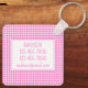 Este chaveiro de monograma fofo apresenta uma xadrez de gingham em tons clássicos de rosa brilhante e branco. Personalize o monograma na frente com sua escolha inicial e texto no verso.