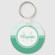 Dê ao seu estilo pessoal um olhar feminino contemporâneo com este chaveiro verde e branco de tendência com um padrão de bolinhas de círculo mod. Qualquer garota moderna adoraria ter seu nome e monograma inicial personalizado neste pré-disquete e design moderna.