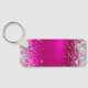 Brilhante prata elegante com brilhos contra uma imagem gráfica de folha metálica embebida em metal magenta magenta magenta clássica e falsa. O monograma de caligrafia em rico preto-e-branco no centro pode ser personalizado. Todos os elementos brilhantes e brilhantes neste moderno design feminino são gráficos digitais. Favoritos para festas da corrente de precioso monogramas para sua celebração especial de aniversário. Um bom tamanho para o anel chave de um funcionário.