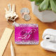 Brilhante prata elegante com brilhos contra uma imagem gráfica de folha metálica embebida em metal magenta magenta, a quente e a quente. O monograma de caligrafia em rico preto-e-branco no centro pode ser personalizado. Todos os elementos brilhantes e brilhantes neste moderno design feminino são gráficos digitais. Favoritos para festas da corrente de precioso monogramas para sua celebração especial de aniversário.