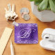 Brilho roxo elegante com faíscas contra uma imagem gráfica de folha metálica embebida em ametista falsa. O monograma da caligrafia do rico branco rico no centro pode ser personalizado. Todos os elementos brilhantes e brilhantes neste moderno design feminino são gráficos digitais. Favoritos para festas da corrente de precioso monogramas para sua celebração especial de aniversário.