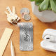 Brilho elegante de prata com faíscas contra uma imagem gráfica falsa de cinza de luz clássica escovou a folha de metal. O monograma de caligrafia em rico preto-e-branco no centro pode ser personalizado. Todos os elementos brilhantes e brilhantes neste moderno design feminino são gráficos digitais. Favoritos para festas da corrente de precioso monogramas para sua celebração especial de aniversário. Um bom tamanho para o anel chave de um funcionário.