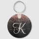 Personalize facilmente essa moda elegante design de chaveiro com bonito brilho rosa-ouro brilhante em um fundo metálico escovado preto.