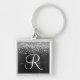 Personalize facilmente esta moda elegante design de chaveiro com brilho prateado bonito num fundo metálico escovado preto.