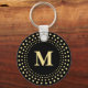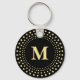 Crie sua própria escrita elegante e personalizada dourada faux / monograma tipográfico monograma em fundo preto, design de padrão de lindos círculos, única, legal, simples, minimalista, personalizada e redonda chaveiro / keyring. Basta digitar seu monograma/iniciais para personalizar. Faz um presente de excelente para aniversário, graduação, dia de os pais, dia de as mães, natal, feriados, primeiro presente para casa/lar, presentes corporativos e muito mais, para seus entes queridos, namorada, namorado, mãe, pai, marido, esposa, casais, recém-casados, clientes corporativos, amigos e família.