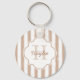 Adicione moda e talento ao seu estilo pessoal com este pré-disquete de bronzeado e chaveiro de listras pintadas brancas e angustiadas. Personalize este design marrom-claro e na moda, acrescentando o nome e o monograma inicial da moda jovem.