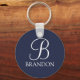 Chaveiro Monograma e Nome de Script Personalizado Azul-mari