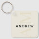 Este chaveiro de na moda bege taupe apresenta um layout moderno com monograma vertical em quase nenhum tipo grande, e seu nome em um tipo simples e proeminente preto horizontal.