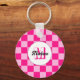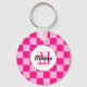 Verificado o chaveiro de retrorreflector geométrico, rosa-quente e quente. Presente de acessórios para ela. Legal padrão quadrado geométrico verificado por retrô. Verificador moderno rosa-quente do azulejo Vintage. Personalize com seu nome e inicial personalizados.