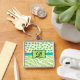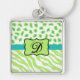 Chaveiro Monograma inicial da pele do leopardo branco-verde