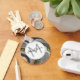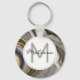 Um chaveiro com um desenho abstrato com um padrão mineral geodo agado. espirais Douradas, cinzas, brancas e pretas formando ondas de cor elegantes. Um círculo de cinza leve com uma fina borda preta colocada sobre cima com seu nome e dentro inicial monograma. Perfeito para transmitir um ar de classe e elegância.