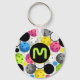 Um chaveiro com um padrão esportivo moderno de bolas de picles multicoloridas em uma grade como o fundo. Faz o presente personalizado perfeito. Você pode alterar a letra no menu personalizar.
