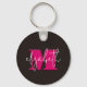 A inicial do na moda monograma e o seu primeiro nome em letras cinzentas e brancas em preto são apresentados nesta cadeia de teclas divertida.