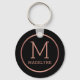 Esta cadeia de teclas personalizada apresenta um design de monograma rosa dourado falso em um fundo preto. Personalize-o com seu nome e inicial.