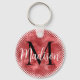 Chave personalizada em vermelho. Abstrato no fundo. Edite a inicial e o nome para torná-la personalizada. Ideia do presente.