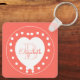 Este design apresenta um fundo de cor de coral com o nome próprio do coral e a letra inicial monograma sobre o coração branco rodeado de pontos. Personalize-o nos campos de texto com um primeiro ou sobrenome e inicial, remova qualquer texto ou clique em personalizar para selecionar um estilo de tipo, tamanho e cor preferidos. A alteração do texto ocorrerá em ambos os lados.