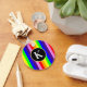 Personalize este design clássico alegre com o seu monograma ou inicial personalizado. Listras finas velhas em cores fabulosas do arco-íris, listras verticais multicoloridas e círculo preto elegante com borda amarela pálida e letra branca. O original da GLBT esbranquiçado listra design de Orgulho Colorido por M Sylvia Chaume. Boas bênçãos!