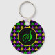 Chaveiro Monograma personalizado do padrão Mardi Gras Fleur