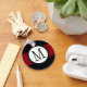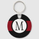 Um simples design composto por uma linha hetero vermelha escura sobre um fundo preto, com um monograma preto e branco circular moderno e contemporâneo sobre ele.