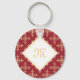 Um chaveiro de padrão floral vermelho de luxo e ouro de quatro pontos que pode ser personalizado adicionando seu monograma. Este elegante design de molho úmido monograma traz o seu lado sofisticado. Imagem plana, não metálica.