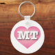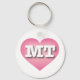 Esta cadeia-chave apresenta um coração calmo, legal e colecionado cor-de-rosa com um centro branco lavado que contém as letras maiúsculas, brancas, em negrito MT, a abreviação oficial para Montana, o estado do tesouro.