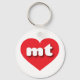 Esta cadeia-chave apresenta um coração vermelho vibrante contendo as letras maiúsculas mt, brancas, arredondadas e em negrito, uma abreviação lúdica para Montana, o estado do tesouro.