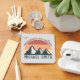 As montanhas de pastéis de safra chamam de design personalizável monograma. Desenho de uma montanha de neve com linhas de cor pastel em amarelo, laranja e vermelho representando o céu do pôr do sol. Acima do círculo céu está um ditado que montanhas estão chamando e debaixo das montanhas há um monograma onde você pode adicionar seu nome. Perfeito para os entusiastas da natureza e caminhada.