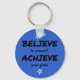 Palavras para viver. Este chaveiro inspiracional tem um texto preto sobre um fundo azul para inspirá-lo. "ACREDITE em si mesmo, ALCANCE seus objetivos." Isso é tudo que você tem que fazer para liberar o poder dentro.