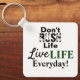 Chaveiro Motivacional com a redação, Não Leve a Vida, Viva a Vida Todos os Dias em texto preto e verde com várias fontes para homens ou mulheres de todas as idades para se lembrarem de divertir e divertir-se. Slogan original e design © 2019 TamiraZDesines. Todos os Direitos Reservados. Visite minha loja para ver mais itens originais: www.zazzle.com/tamirazdesigns