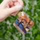 A chaveiro é mostrada com uma impressão de fotos de filhotes de leões de montanha bonitos. Personalize este item ou comprar como está. Imagem do stock