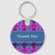 Este chaveiro vibrante apresenta um padrão caleidoscópio azul e rosa. Um cartaz no centro fornece um fundo sólido para as suas palavras de apreço. "Obrigado" pode ser facilmente personalizado se desejar.