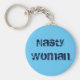 Mantenha um lembrete de sua atitude rebelde à mão com um chaveiro personalizado que diz: "Mulher Desagradável" em texto azul marinho angustiado sobre fundo azul-céu. Faz um excelente de estocagem. Para ver a design Nasty Woman em outros itens, clique no link de loja "Rocklawn Arts" abaixo.