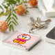 Pinguim geeky bonito do rosa dos desenhos animados da menina que guardara o coração cor-de-rosa