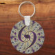 Music Double Bass Clef on Gold Fractal Keychain. . A great gift for your favorite bass player, musician or music lover.