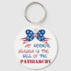 This is a fully custom keychain, you can change all the words, fonts, colors, and even the bow. At the top is a cute red, white, and blue star-spangled bow. The words say "My favorite season is the fall of the patriarchy." I opted for a white shirt because it could represent the white of red, white, and blue, but also the red and blue show up much better on white than the other colors available. This will make a wonderful gift! Great to wear for the 4th of July or President's Day even.