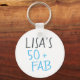 Chaveiro de aniversário moderno e na moda com 50 anos com o texto cinquenta e fabuloso em um roteiro elegante azul brilhante. Basta adicionar seu nome a este chaveiro personalizado de celebração de 50 anos. Presente perfeito de aniversário para um moderno, na moda e elegante de 50 anos. Desenvolvido exclusivamente para você pelo Happy Dolphin Studio!