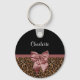 Fiquem na moda com este chaveiro marrom de pele de leopardo na moda com uma fita marrom elegante amarrada em um arco chic. Personalize este design de impressão animal moderno e clássico adicionando seu nome. Imagem impressa plana, não com pelo ou fita real.