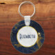Um chaveiro com marinho elegante moderno azul e mármore dourado. Camadas sobre o topo é um círculo com uma borda falsa de folha de papel dourada com o seu dentro de texto personalizado.