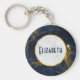 Um chaveiro com marinho elegante moderno azul e mármore dourado. Camadas sobre o topo é um círculo com uma borda falsa de folha de papel dourada com o seu dentro de texto personalizado.