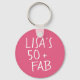 Chaveiro de aniversário moderno e na moda com 50 anos com o texto cinquenta e fabuloso em escrita elegante rosa-quente. Basta adicionar seu nome a este chaveiro personalizado de celebração de 50 anos. Presente perfeito de aniversário para um moderno, na moda e elegante de 50 anos. Desenvolvido exclusivamente para você pelo Happy Dolphin Studio!