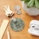 Nesta cadeia de chaves de festa de casamento de na moda é uma coroa de folhas colorida embutida com ouro em um pano de fundo de madeira rústico onde no centro você pode personalizá-la para torná-la exclusivamente sua. A elegância da fazenda. Da Na moda Trendy Wedding Gifts Collection