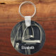Um chaveiro com uma fotografia típica de tom de sépia branco e preto. Uma foto de uma sela de couro inglesa focada nos estribos de prata. Perfeito para entusiastas de equitação em inglês.